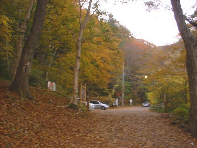 トンネルの手前を右折 花貫渓谷の駐車場
