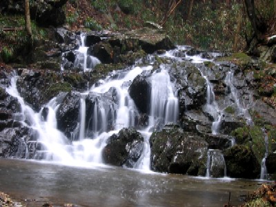 幅広く幾筋にも流れ落ちる上滝は見応えがあり