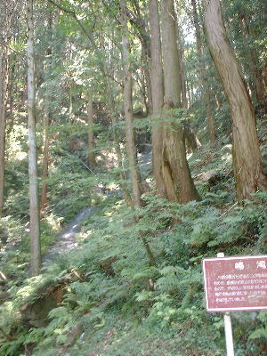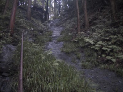 | 自然石の階段を登る |
