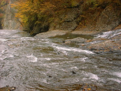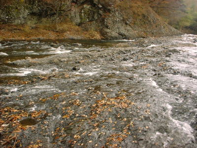 | 国道461号で奥の滝の看板を見つけ 側道へ入り 民家の前に車を停め、河原に出て見る | |
