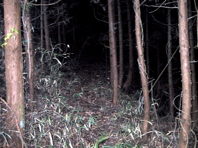 | しばらく杉山を歩くと拓けた河原の出る 川なりに右へ | しばらく歩く・・・・そしてこの笹の奥に・・・ |