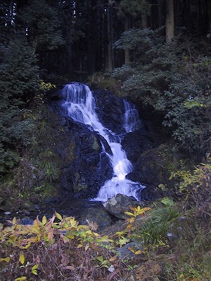 | ダムがあり 杉山の切れ間に太平洋が見える | 滝が見えた♪ |
