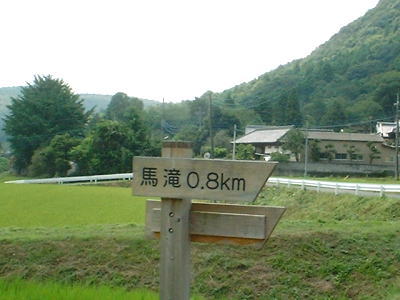 | 目印は園部小学校 その前の信号で県道278号線と県道140号が交わる 笠間方面へ500mぐらい走ったところにギフトインテリア「ハナリ」というお店があり その脇の民家との間の細い道を左折果樹園の道を進むと 案内板が出ている 馬滝 0.8kmの看板は明圓寺の入り口のところにあり 右折して山道を登る |