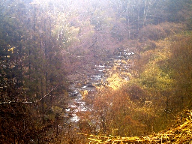 沢沿いは 滑る不安で 崖を登りながら下流へ向ってみた