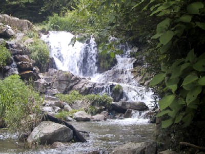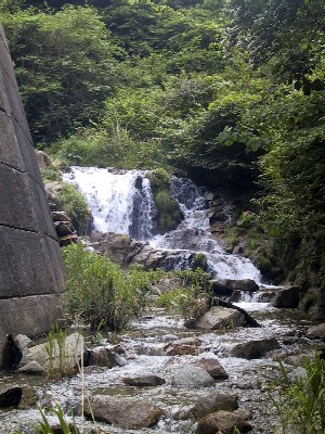 日立北インターまで高速を使って移動 県道10号を高萩方面に向かって走行 常陸太田方面へ向う県道60号へ左折 十王ダムを過ぎて、「聖孝園」の看板 沢平・藤坂方面に左折 600mほど走ったところに 「聖孝園」の入り口から滝を発見 道脇に車を停め入り口の橋から滝へ近づきました♪