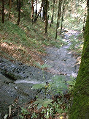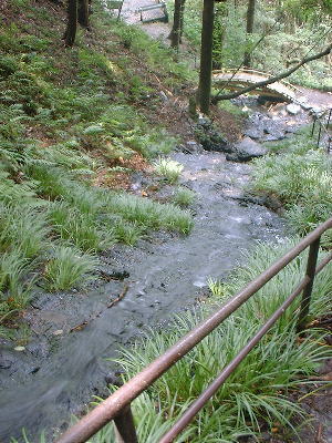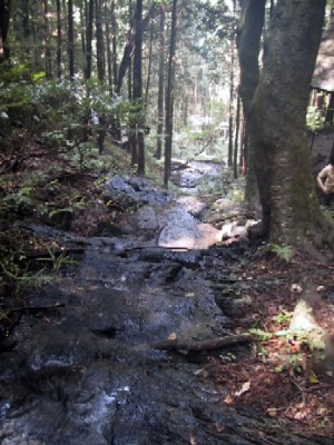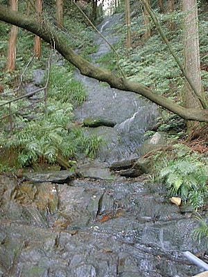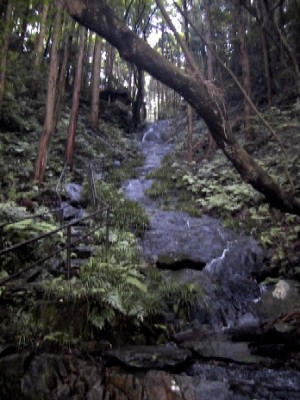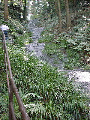 | 滝の中腹から下を撮影 | もう少し登ったところで また 下を撮影 |