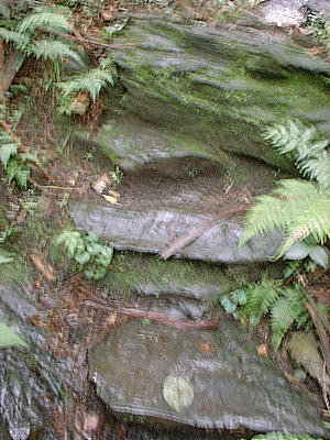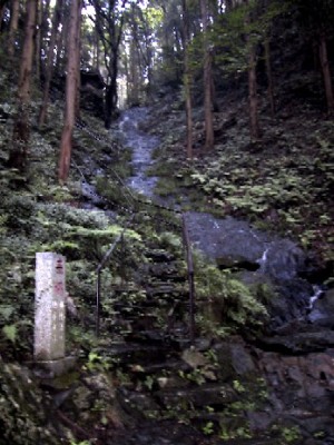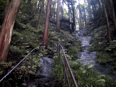 | 自然石の階段を登る |