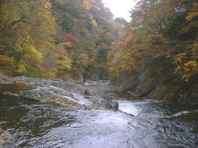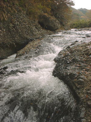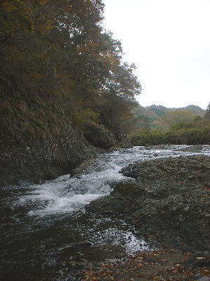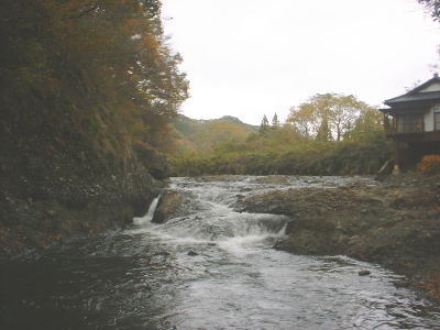 | 国道461号で奥の滝の看板を見つけ 側道へ入り 民家の前に車を停め、河原に出て見る | |