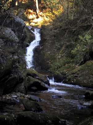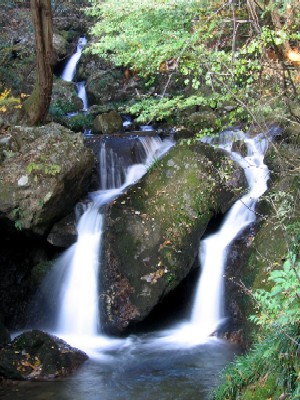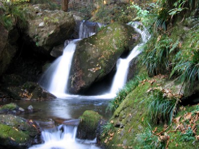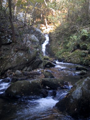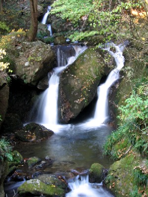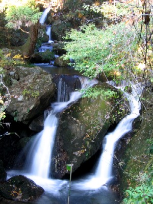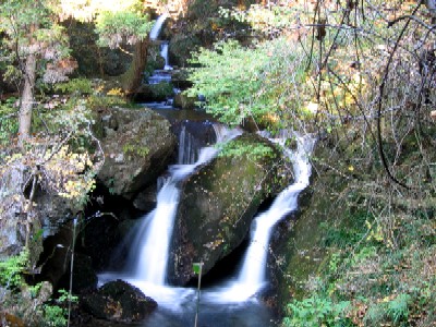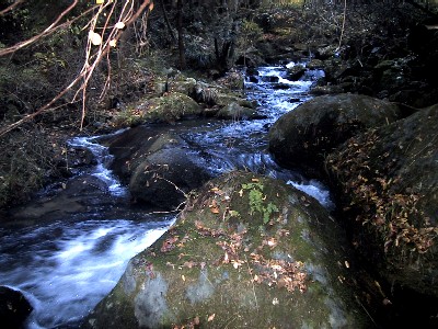 | 対岸に渡るのは諦めて岩の下の石の乗って覗き込むように撮影 とてもスローシャッターなどブレブレ(;^^A 水の中で三脚も立てられない(−−; これではどんな滝? |