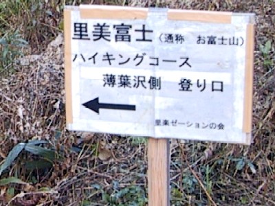 そこに車を置き左右に里美富士ハイキングコースの道しるべ♪