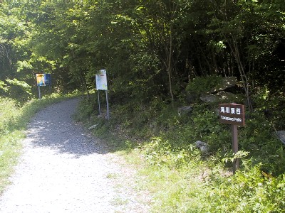 山頂へ6kmの看板を通り越してすぐ 遊歩道入り口の看板 300mくらいで大の駐車場