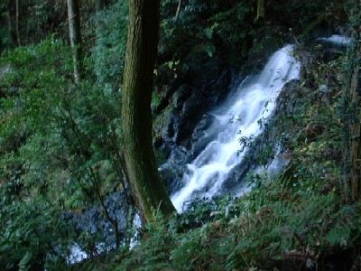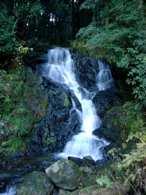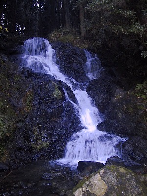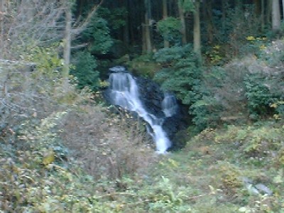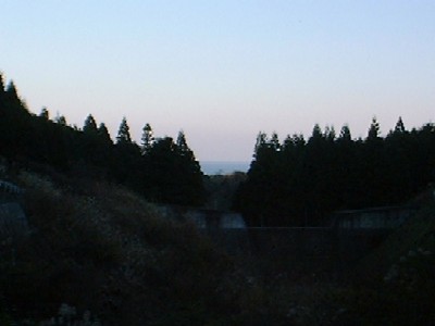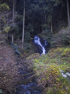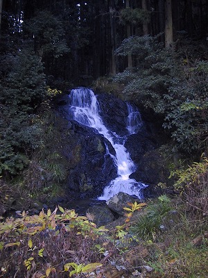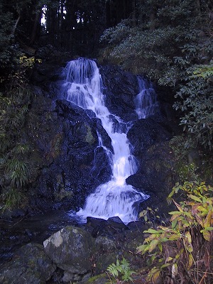 | ダムがあり 杉山の切れ間に太平洋が見える | 滝が見えた♪ |